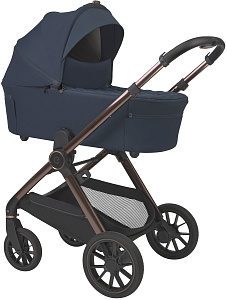 - Премиальный дизайн с медными акцентами. Элегантная отделка рамы и аксессуаров в цвете благородной приглушенной меди подчеркивает современный стиль коляски и делает её по-настоящему эффектной.