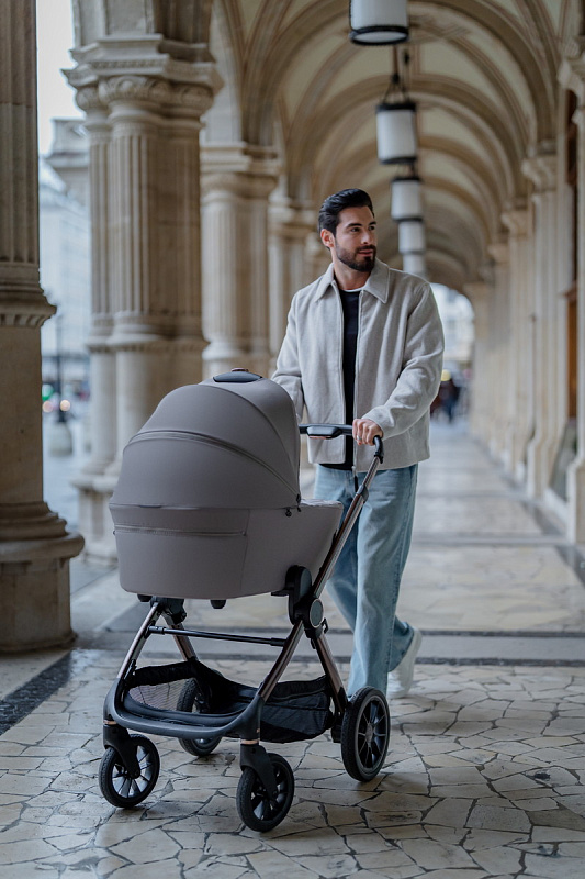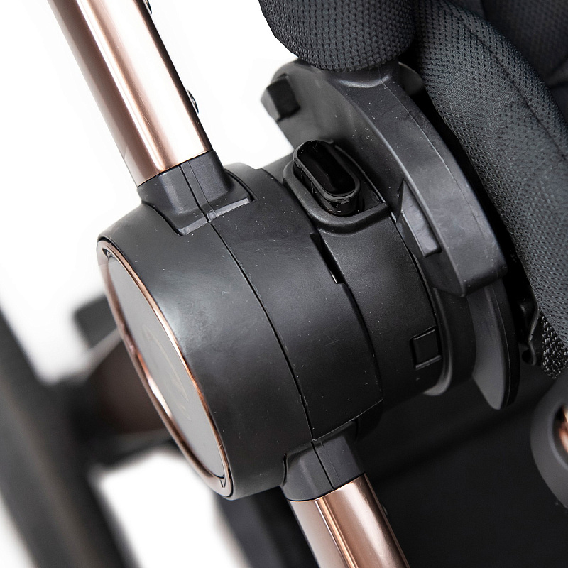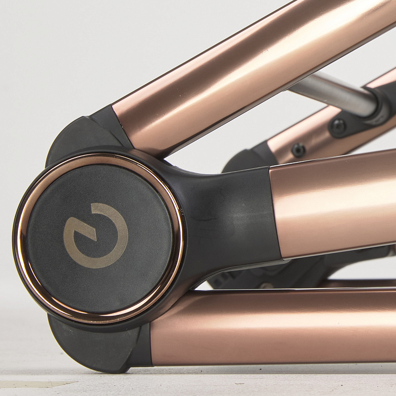 - Премиальный дизайн с медными акцентами. Элегантная отделка рамы и аксессуаров в цвете благородной приглушенной меди подчеркивает современный стиль коляски и делает её по-настоящему эффектной.