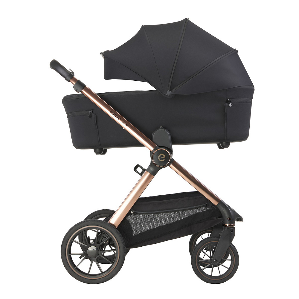- Премиальный дизайн с медными акцентами. Элегантная отделка рамы и аксессуаров в цвете благородной приглушенной меди подчеркивает современный стиль коляски и делает её по-настоящему эффектной.