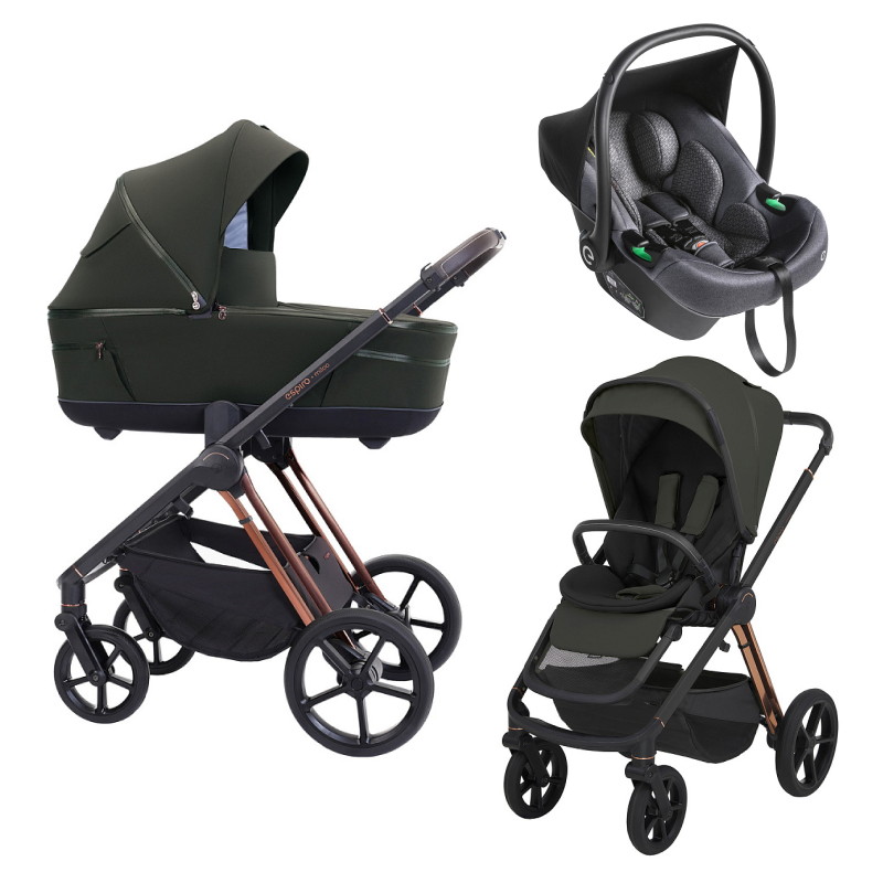 Детская коляска 3 в 1 Espiro Miloo 2025 и автокресло Pi Graphite 204 luxury green / Графитовый (Graphite 117)