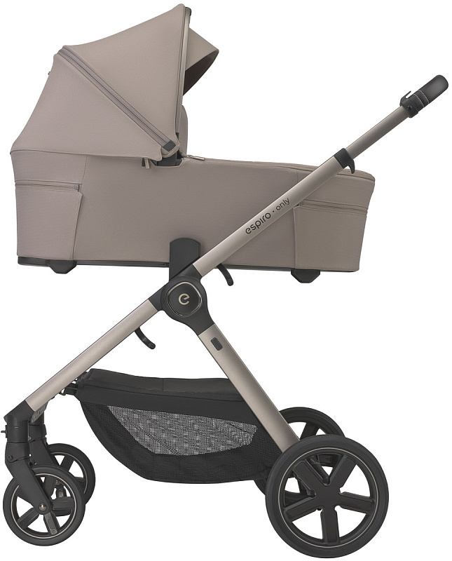 - Люлька Espiro Only создана для комфортных прогулок с первых дней жизни малыша. Она весит всего 3,9 кг, поэтому ее удобно переносить и устанавливать на раму.