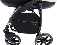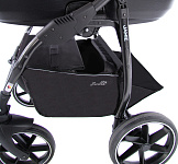 Коляска укомплектована стильной вместительной сумкой для мамы, москитной сеткой, плотным дождевиком, пеленальным ковриком, закрытой корзиной для покупок с удобными вариантами доступа – открывающаяся при помощи замка крышка, либо более быстрый вариант – откидная боковая часть на магните со стороны оси.