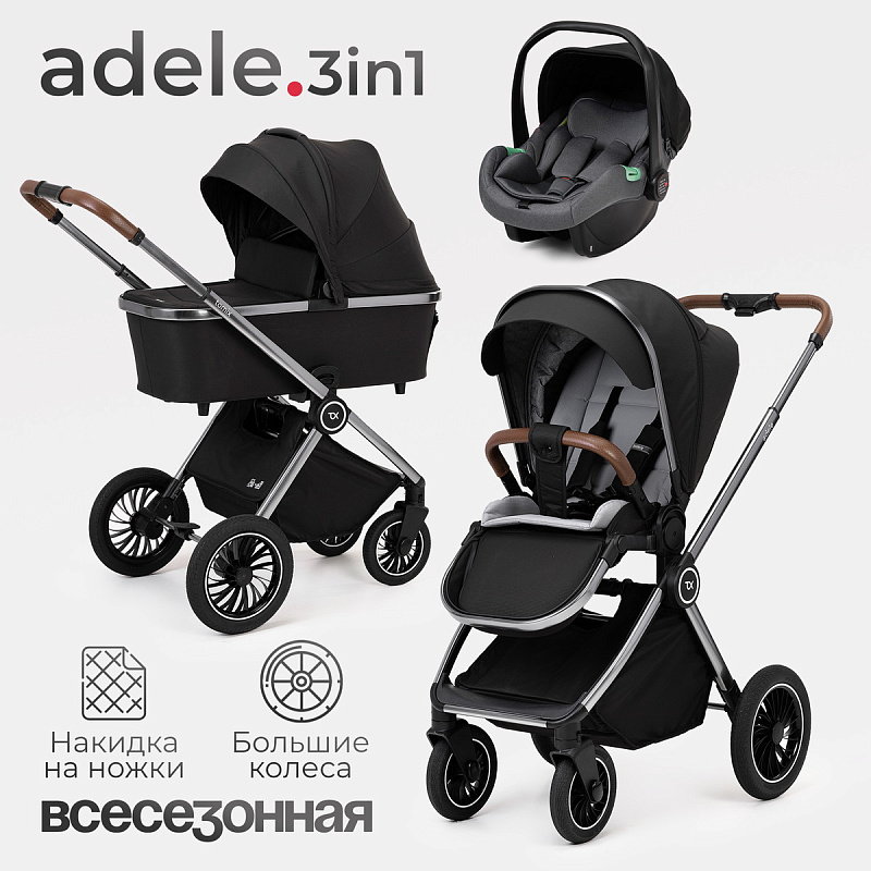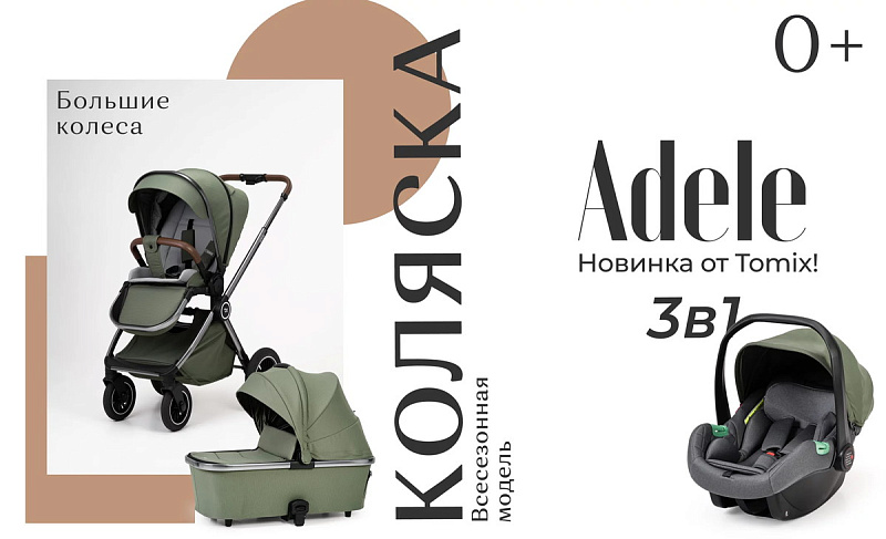 Новинка от компании Tomix! Детская коляска 3 в 1 Adele — идеальное решение для родителей, которые ищут комфорт и безопасность для своего малыша. Это модульная коляска, которая включает в себя люльку для новорожденного, прогулочный блок и автокресло гр. 0+, которое устанавливается на раму коляски.