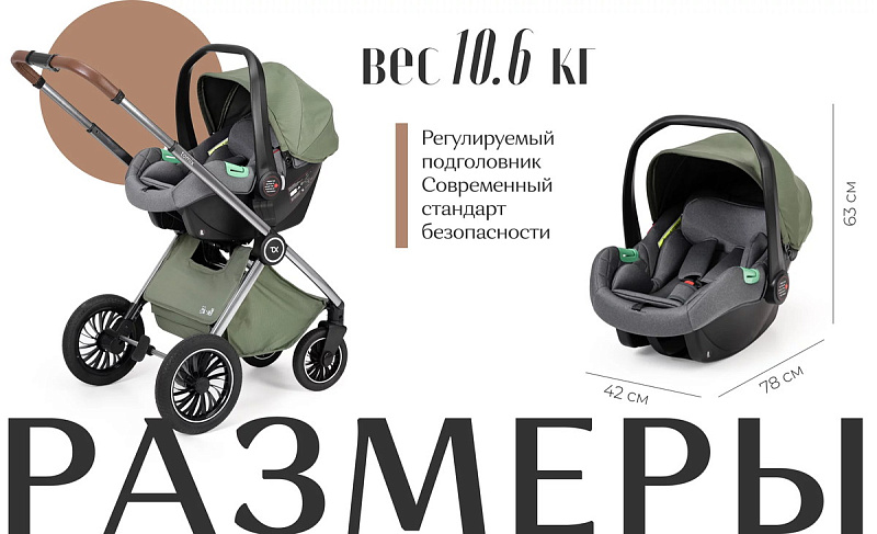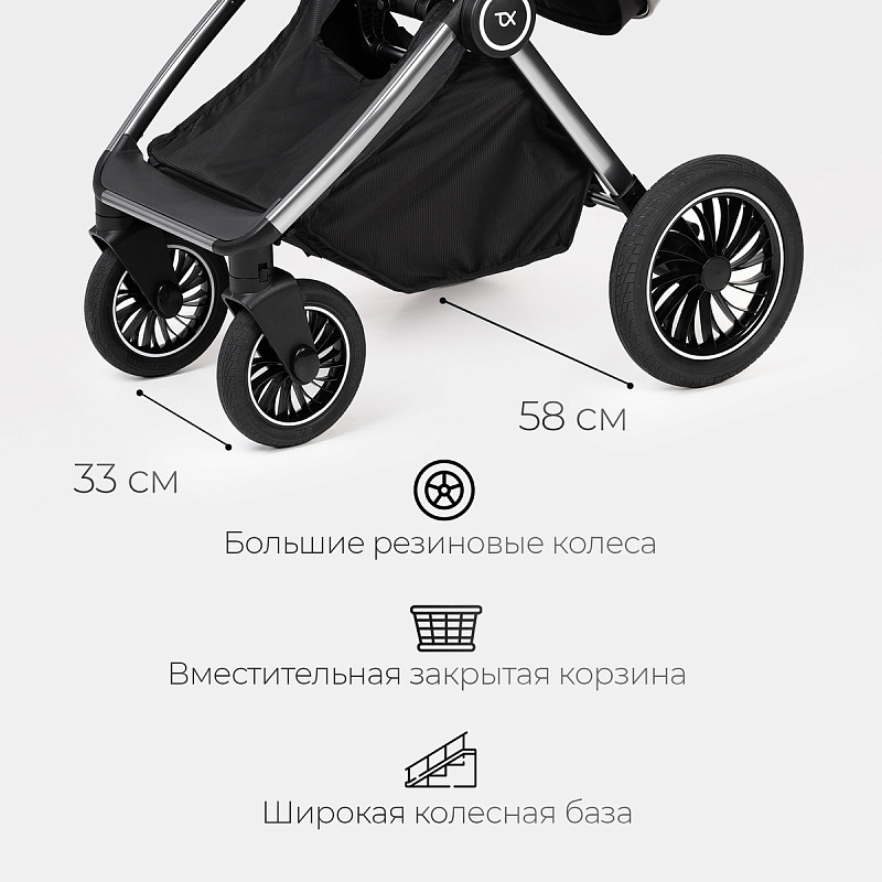 - Премиальная ткань используется для обивки коляски, обеспечивая мягкость и долговечность;