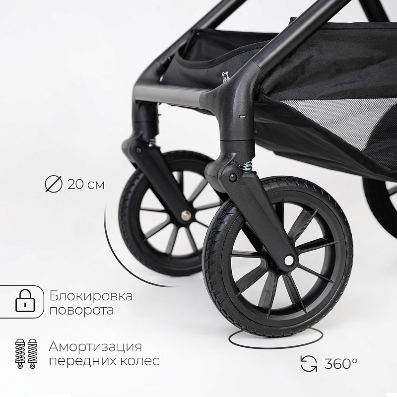 Амортизация колёс гарантирует плавный ход и мягкость езды даже на неровных поверхностях.
