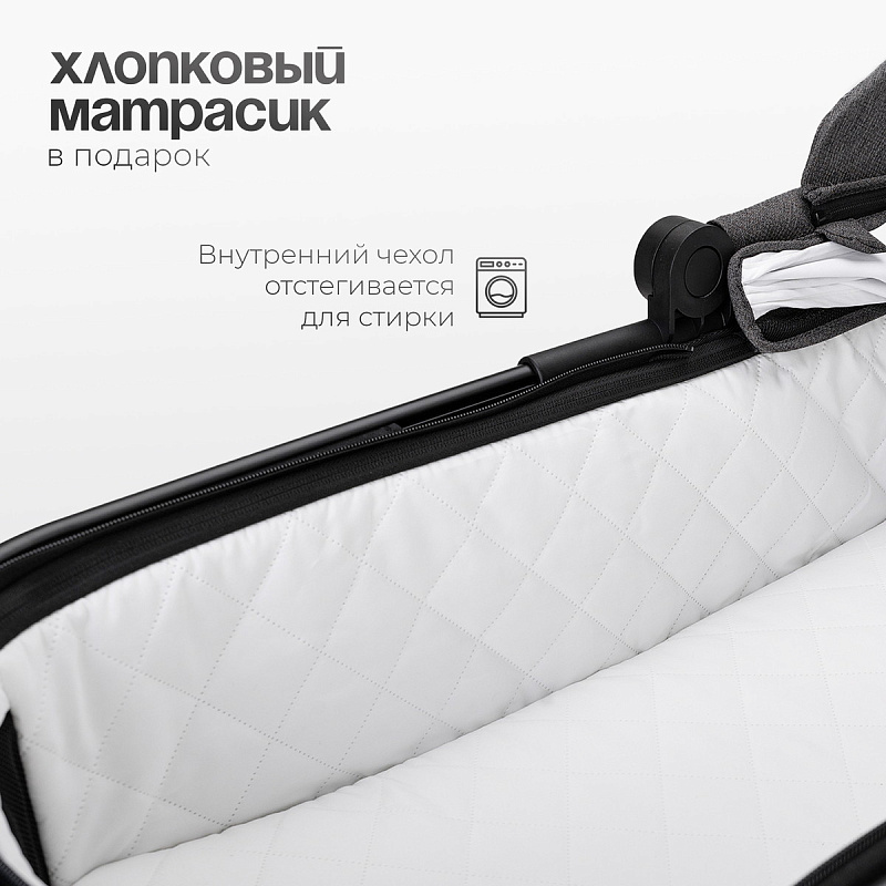 Люлька для новорождённого — это идеальное дополнение к коляске. Она оснащена удобным матрасиком, мягкой съёмной обивкой из дышащей хлопчатобумажной ткани, которую можно стирать. Защитный экран со смотровым окном обеспечивает защиту от ветра и осадков, а три вентиляционных окошка в стенках люльки создают комфорт в жаркие летние дни. Ручка для переноски из экокожи делает процесс переноски люльки максимально удобным.