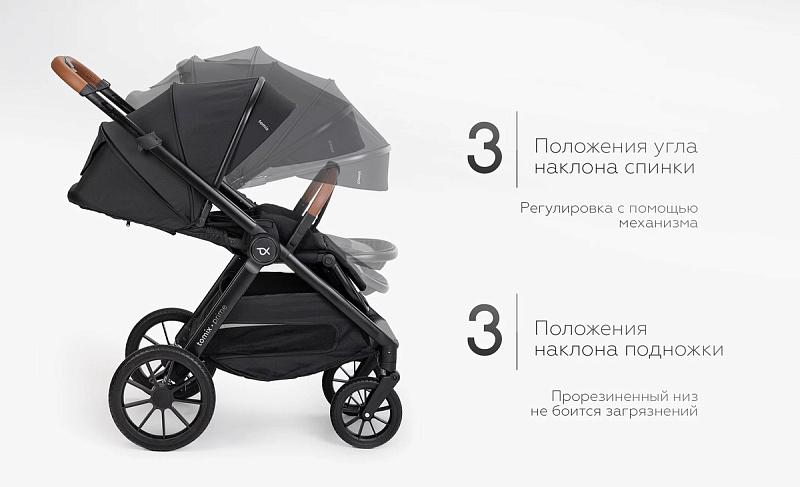 Механическая регулировка спинки позволяет настроить оптимальное положение для комфортного сна или бодрствования малыша. В комплекте идёт утеплённая накидка на ножки, которая защитит ребёнка от холода и ветра в прохладную погоду.