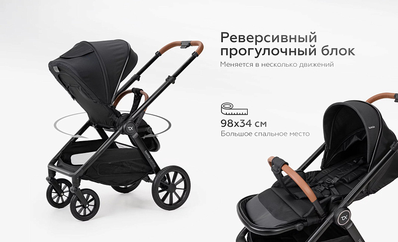 Быстросъёмный реверсивный прогулочный блок позволяет легко менять положение прогулочного блока в зависимости от возраста и потребностей малыша.