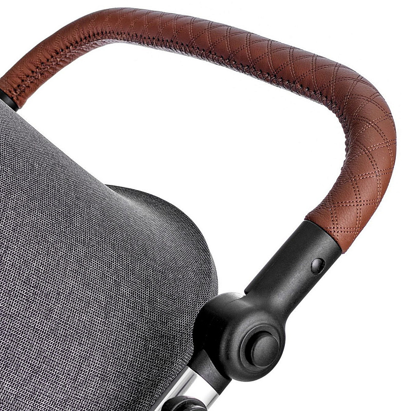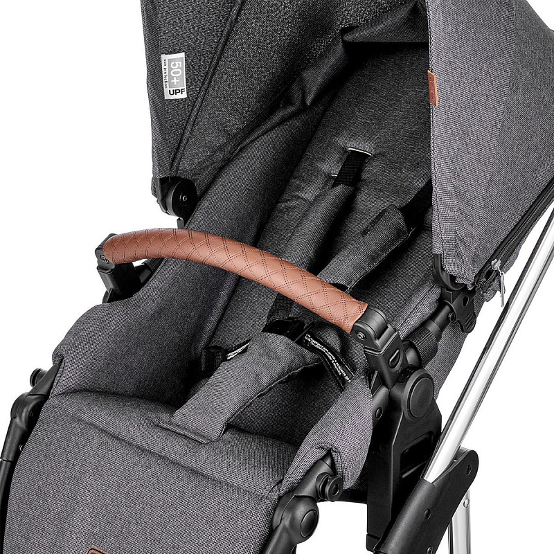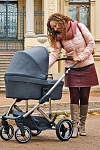 Детская коляска изготовлена из качественных и безопасных материалов, не имеет сотрых углов. Шасси оснащены поворотными колесами, регулируемой ручкой. Люлька коляски оснащена ручкой для переноски, теплой накидкой, матрасиком. Прогулочный блок имеет пятиточечные ремни безопасности, съёмный бампер и кресло, которое раскладывается до положения "лежа".