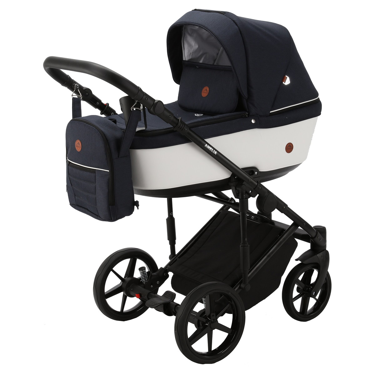 Детская коляска Adamex Amelia 2 в 1 AM240-TIP (СИН+БЕЛ.КОЖА)