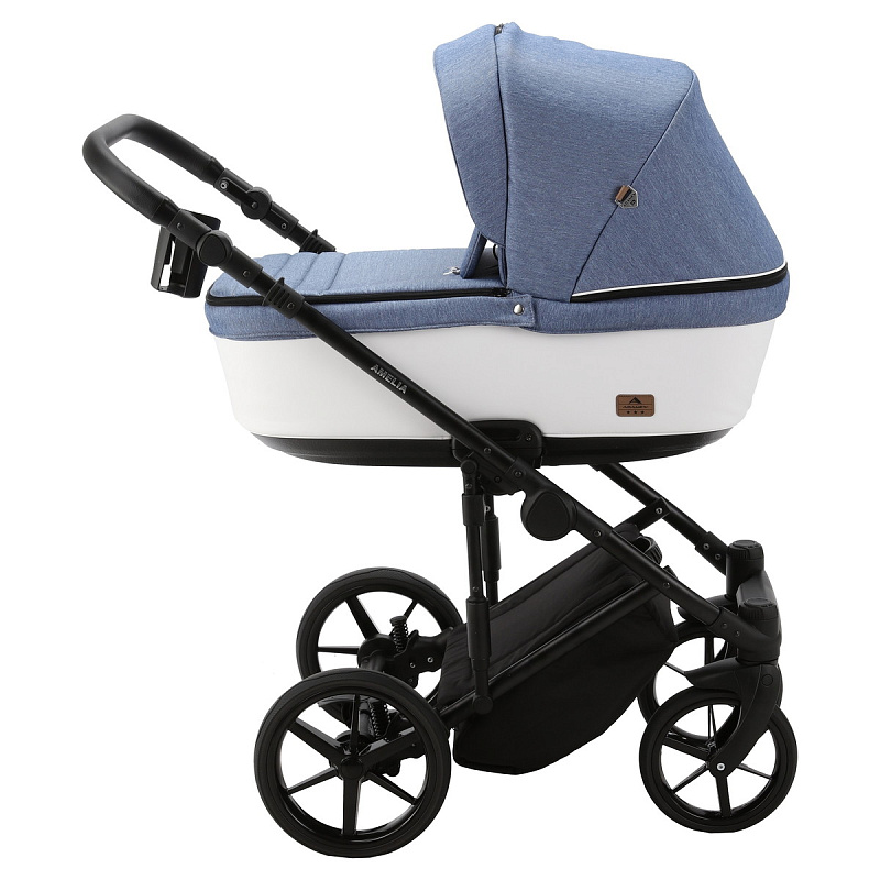 Детская коляска Adamex Amelia 3 в 1 AM239-TIP (ГОЛУБ.ДЖИНС.ТК.+БЕЛАЯ КОЖА)