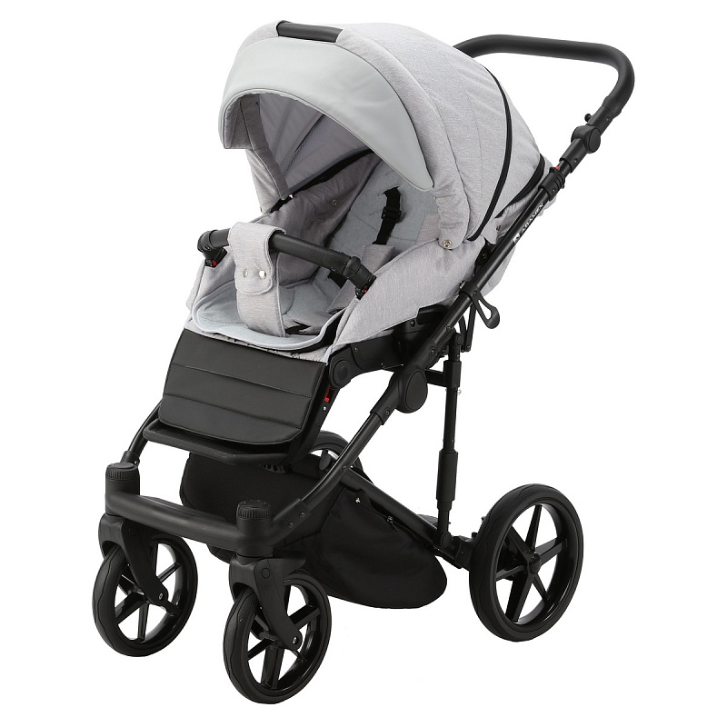 Коляска изготовлена из безопасных материалов, оборудована шасси из алюминиевого сплава с инновационной системой амортизации всех четырех колес. В сложенном виде не занимает много места. Внутренняя и внешняя обивка произведены из качественного текстиля. Люлька просторная, имеет вентиляцию дна, регулируемый подголовник. Прогулочный блок оборудован спинкой с регулировкой по высоте, ремнями безопасности с мягкими накладками.