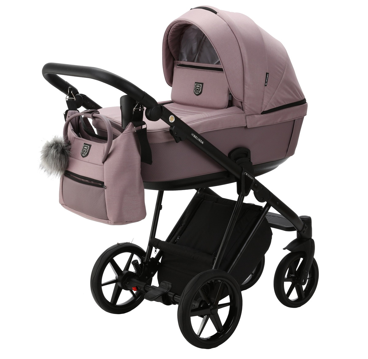 Детская коляска Adamex Belissa 3 в 1 B-PS21/A (СЕРО-РОЗОВ+СИРЕНЬ ПЕРФ.КОЖА)