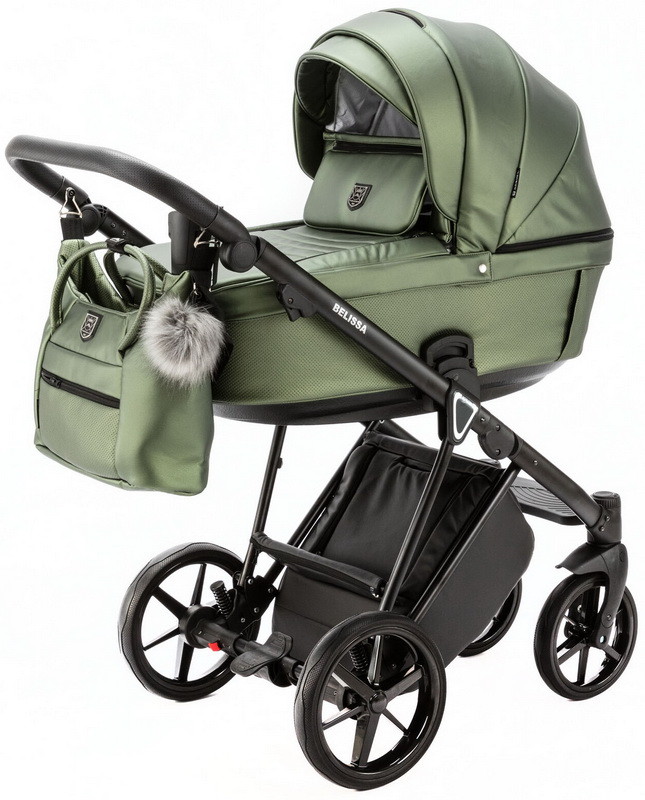 Детская коляска Adamex Belissa Deluxe 2 в 1 B-SM14 (ЗЕЛЁН.ПЕРЛ.КОЖА)