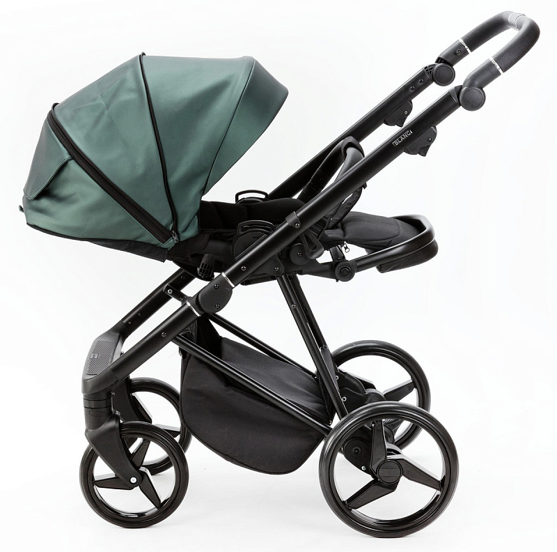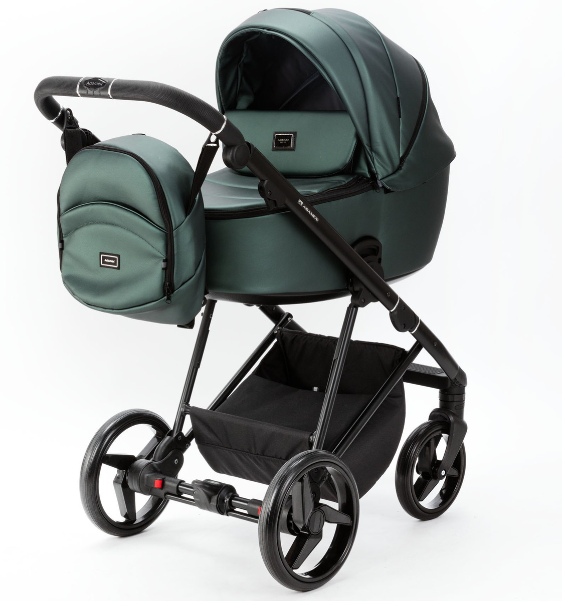 Детская коляска Adamex Blanc Deluxe 3 в 1 BL-SM15 (Т.ЗЕЛЕНАЯ ПЕРЛ. КОЖА 100%)