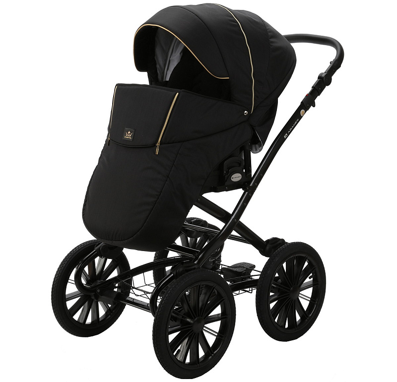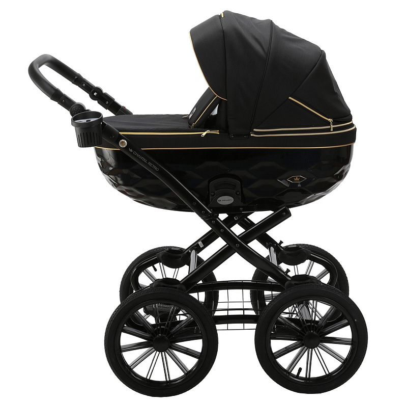 Детская коляска Adamex Chantal Retro 2 в 1 C1-A (ЧЕРНЫЙ+ЗОЛОТЫЕ МОЛНИИ)