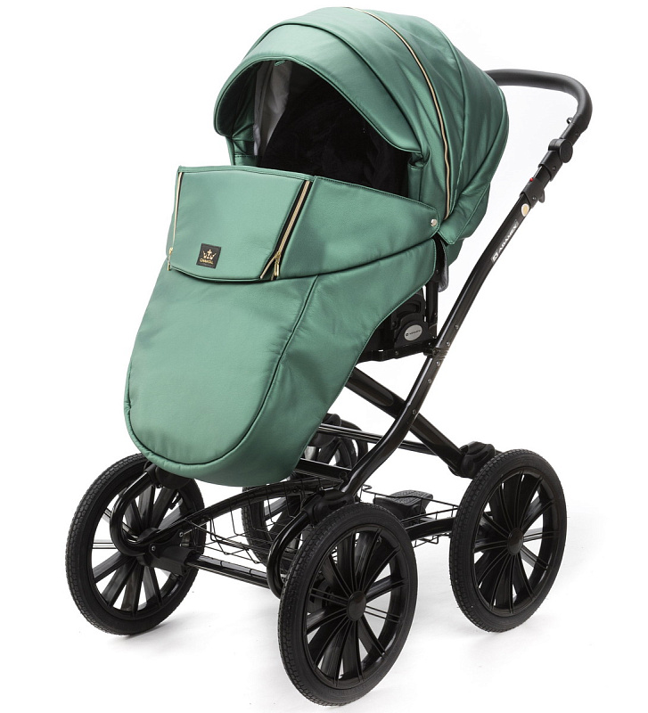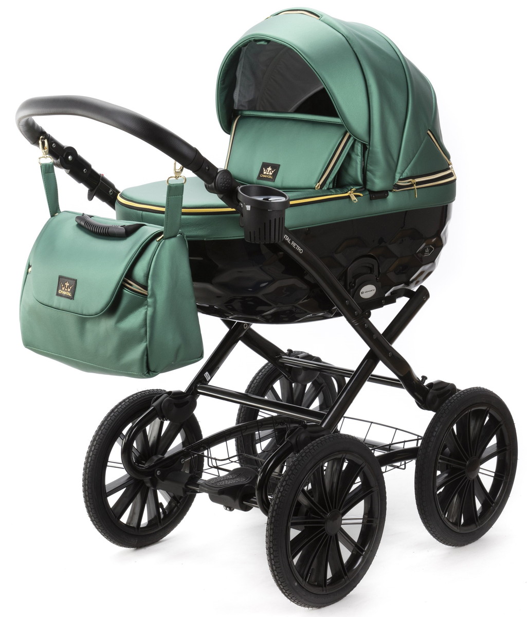 Детская коляска Adamex Chantal Retro Deluxe 2 в 1 C105B (ИЗУМРДНАЯ 100% КОЖА-ЗОЛОТЫЕ МОЛНИИ)