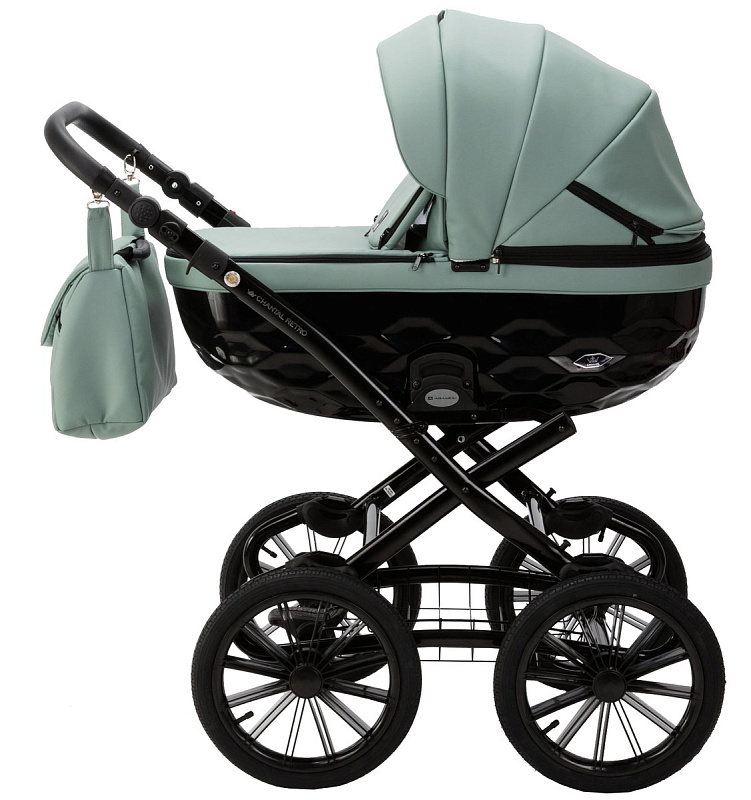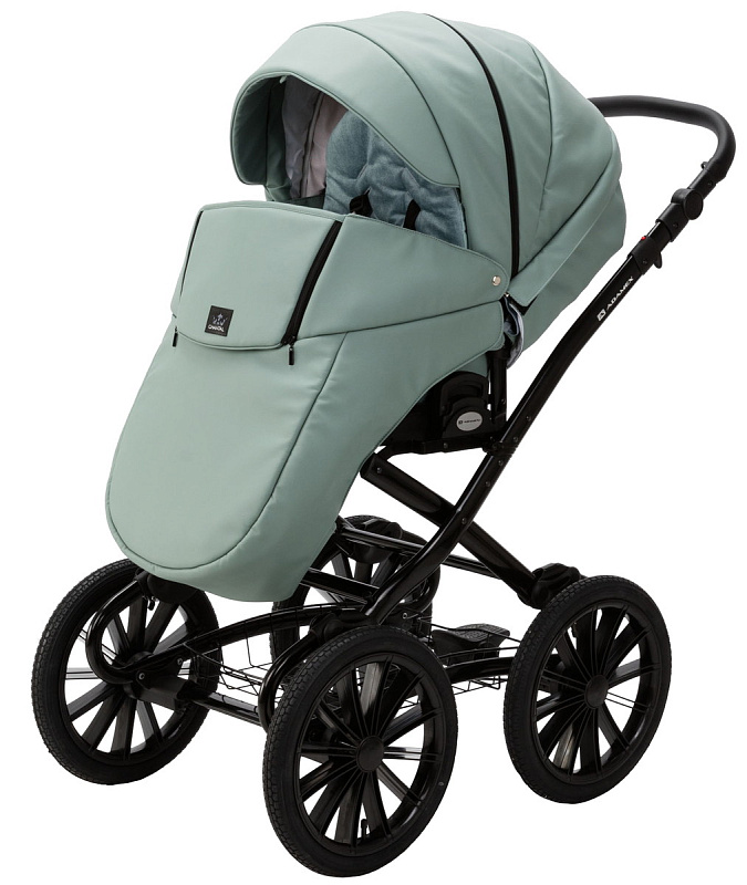 Детская коляска Adamex Chantal Retro Deluxe 2 в 1 C-SA20 (СЕРО-ЗЕЛЕНАЯ КОЖА)