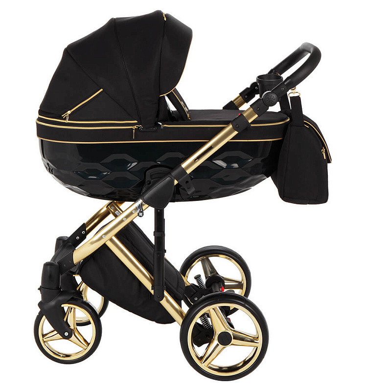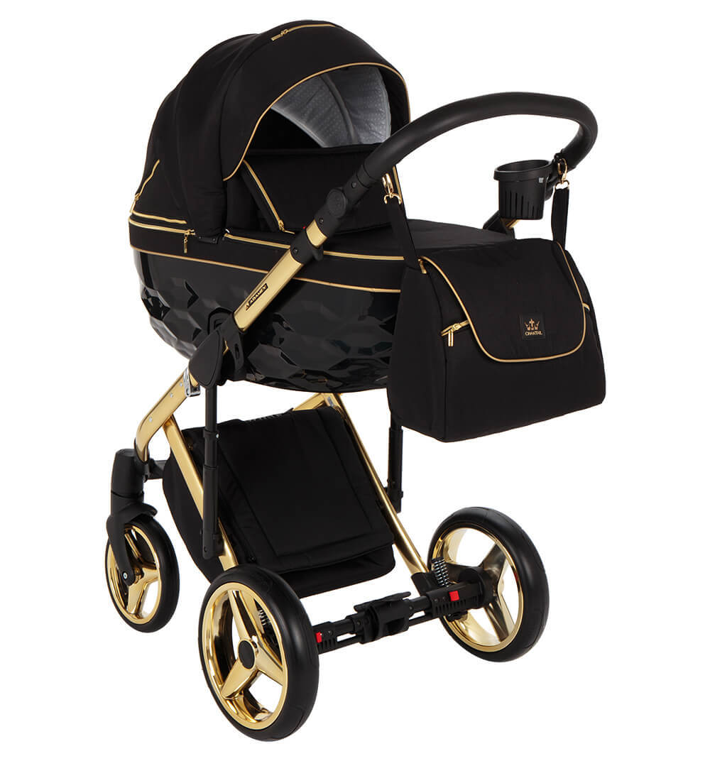 Детская коляска Adamex Chantal Special Edition 2 в 1 C1-A (ЧЕРН+ЧЕРН.РИФЛЕН.ДНО,ЗОЛОТ.МОЛН+ЗОЛОТО РАМА)