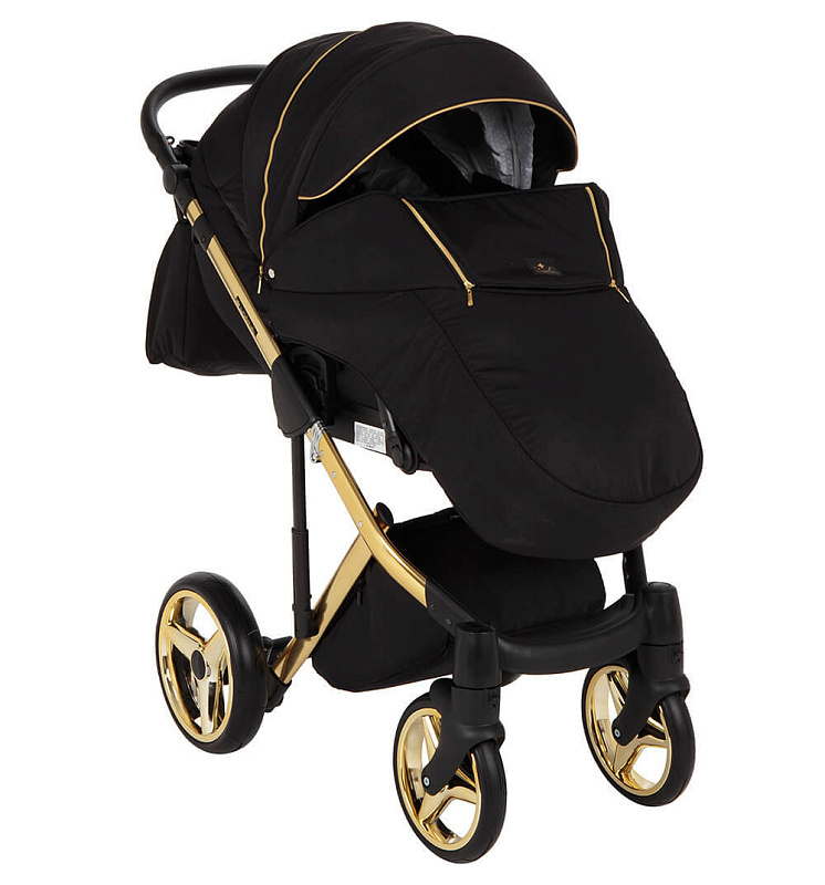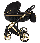 Детская коляска Adamex Chantal Special Edition 3 в 1 C1-A (ЧЕРН+ЧЕРН.РИФЛЕН.ДНО,ЗОЛОТ.МОЛН+ЗОЛОТО РАМА)