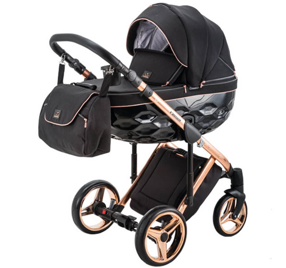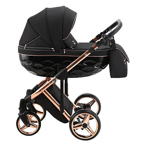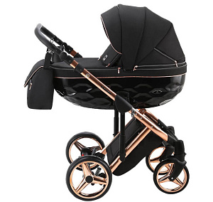 Эксклюзивная коллекция, выполненная с использованием изящных тканей и элегантных полированных каркасов. Коляска отличается эксклюзивным рифлёным дном люльки и элегантным подбором тканей. Алюминиевая рама, имеет один из уникальных для этой серии цвет, оснащена новейшими центральными амортизаторами с функцией блокировки, амортизаторами на задней колесной базе с регуляцией жесткости, противоударной системой анти-шок на передних колесах и регулируемой по высоте ручкой с покрытием из эко-кожи приятной на ощупь. Колеса гелиевые (GEL), повышают комфорт передвижения и облегчают эксплуатацию, т.к. не требуют замены или подкачки. Коляска очень манёвренная благодаря передним поворотным колесам с функцией фиксацией в прямом положении. В капюшоне люльки (корзины) имеются вентиляционное окно на молнии, а также солнцезащитный козырек. В чехле люльки предусмотрено смотровое окно, которое дает возможность поддерживать постоянный визуальный контакт с ребенком, окно закрывается клапаном. Клапан также служит дополнительно защитой от непогоды. В капюшон прогулочного блока встроен дополнительный сегмент на молнии, что позволяет увеличить капюшон и козырек от солнца. Оба блока коляски можно легко установить на раме в обоих направлениях с помощью системы one-click.
