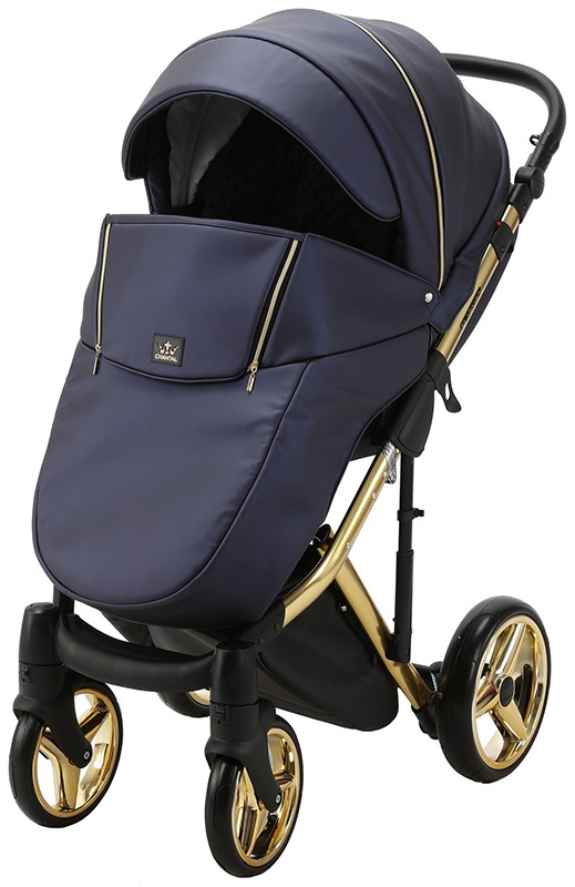 Детская коляска Adamex Chantal Special Edition Deluxe 2 в 1 C108 (СИН.ПЕРЛ.КОЖА ЗОЛОТ РАМА)