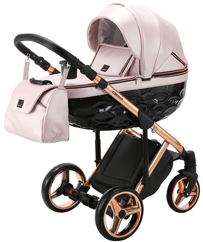 Детская коляска Adamex Chantal Special Edition Deluxe 2 в 1 C118 (СВ.РОЗ.ПЕРЛ.КОЖА МЕДН.РАМА)