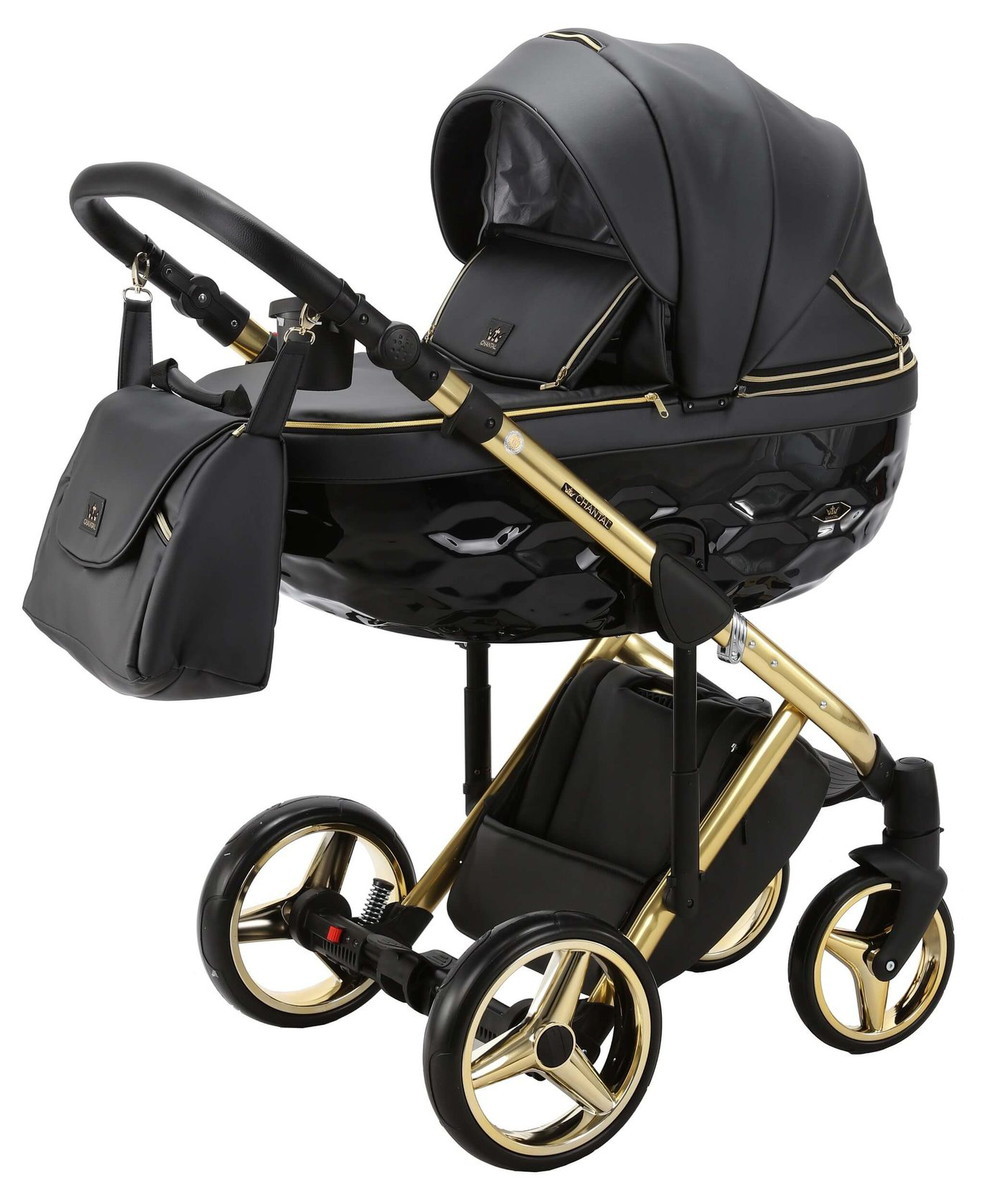Детская коляска Adamex Chantal Special Edition Deluxe 3 в 1 C113 (ЧЕРН.ПЕРЛ.КОЖА+ЗОЛОТО РАМА)