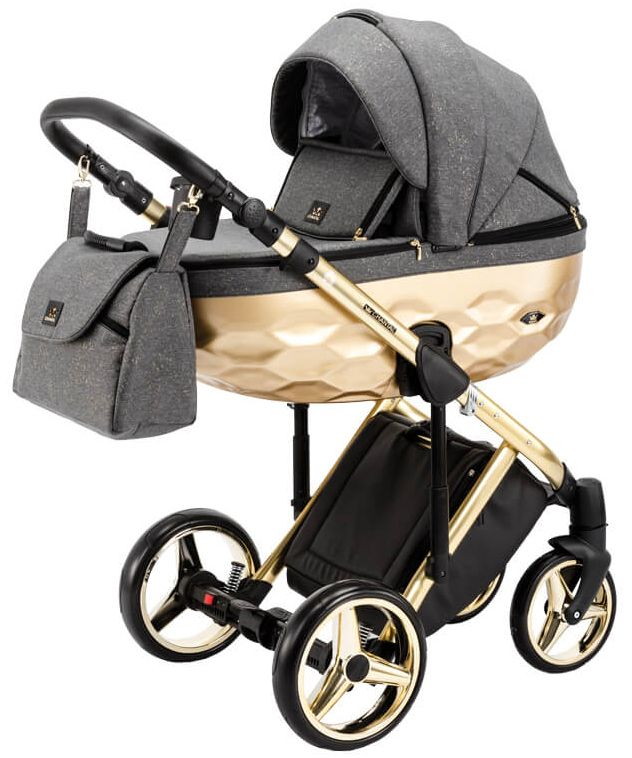 Детская коляска Adamex Chantal Star Collection 2 в 1 STAR001 ГРАФИТ+ЗОЛОТО БЛЕСТКИ+ЗОЛОТО РАМА