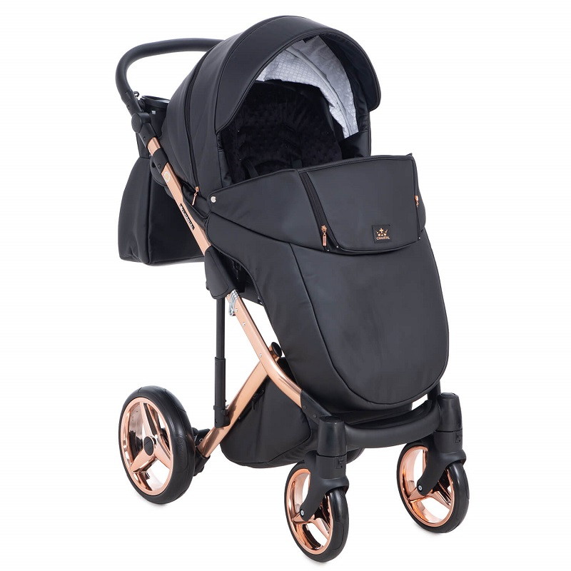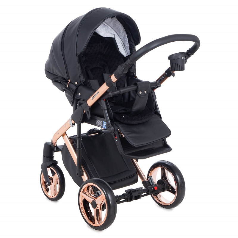 Роскошная модель коляски, которая отличается не только повышенной комфортабельностью, но и необычным внешним видом. Первое, что бросается в глаза при взгляде на нее – это основа люльки, выполненная в оригинальном стиле. Металлизированная отделка, украшающая раму, присутствует и на ободах колес. Эксклюзивный дизайн люльки и элегантный подбор тканей. Шасси оснащено новым амортизатором с полной блокировкой. Коляской легко управлять на любой поверхности, сохраняя плавность ее передвижения. Капюшон люльки и прогулочного сидения имеют дополнительную вентиляцию, которую можно открыть по мере необходимости. Накидка на люльку оборудована высоким бортиком со смотровым окошком, благодаря которому можно наблюдать за ребенком. Стиль коляски подчеркивают современные полиуретановые колеса, не требующие обслуживания и накачивания. Модель оснащена кокосовым матрасиком.