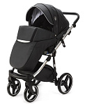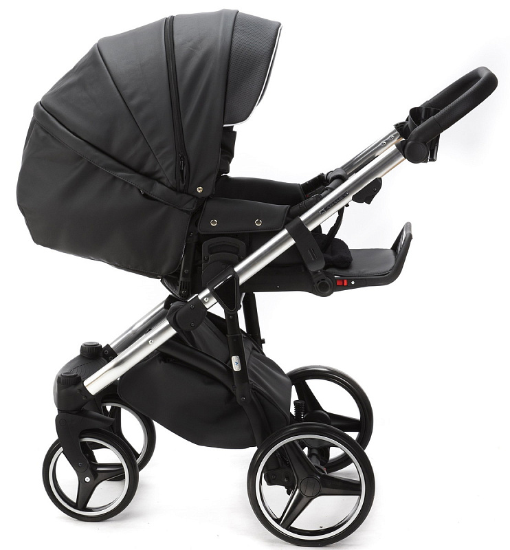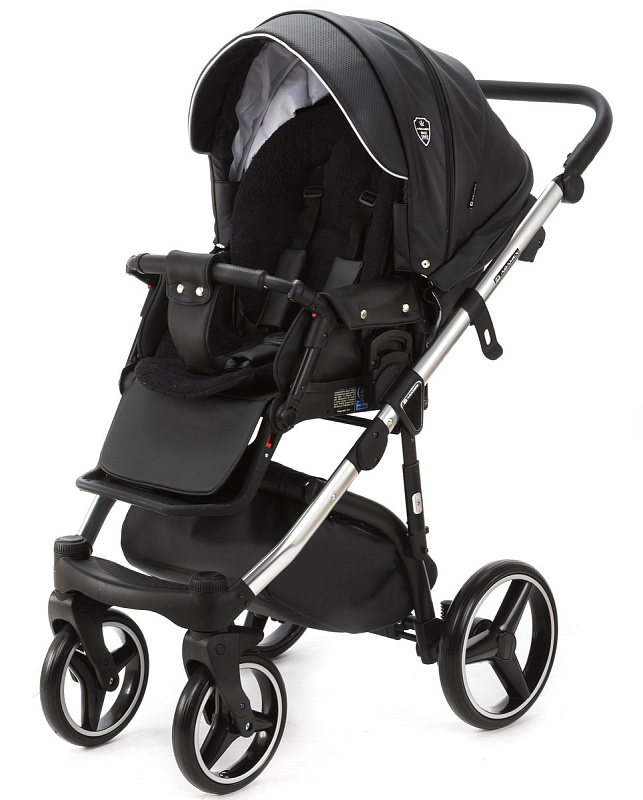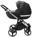 Детская коляска Adamex Cortina Deluxe 2 в 1 CT334/A (ЧЕРН.КОЖА+СЕРЕБ.ОТДЕЛКА+ХРОМ РАМА)