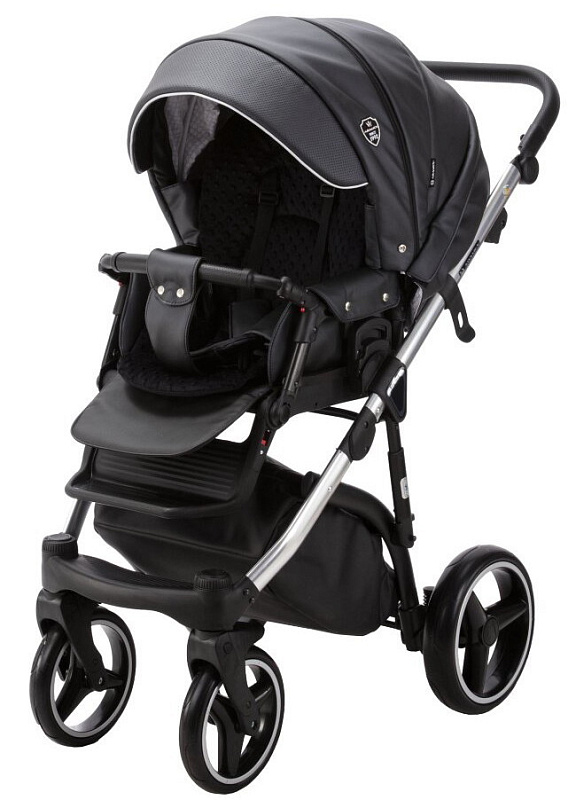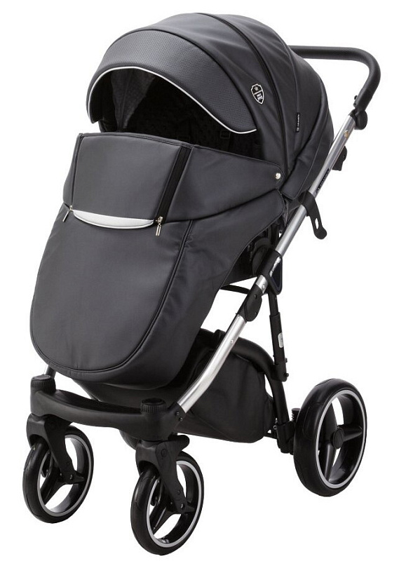 Детская коляска Adamex Cortina Deluxe 3 в 1 CT334 (ЧЕРН.КОЖА+СЕРЕБ.ОТДЕЛКА+ ХРОМ РАМА)