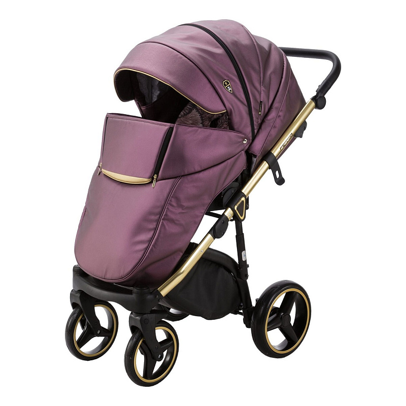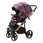Детская коляска Adamex Cortina Deluxe 3 в 1 CT335 (СИРЕНЬ ПЕРЛ.КОЖА+ЗОЛОТО.ОТДЕЛКА+ЗОЛОТО РАМА)