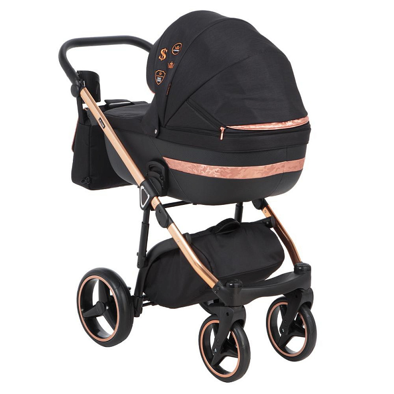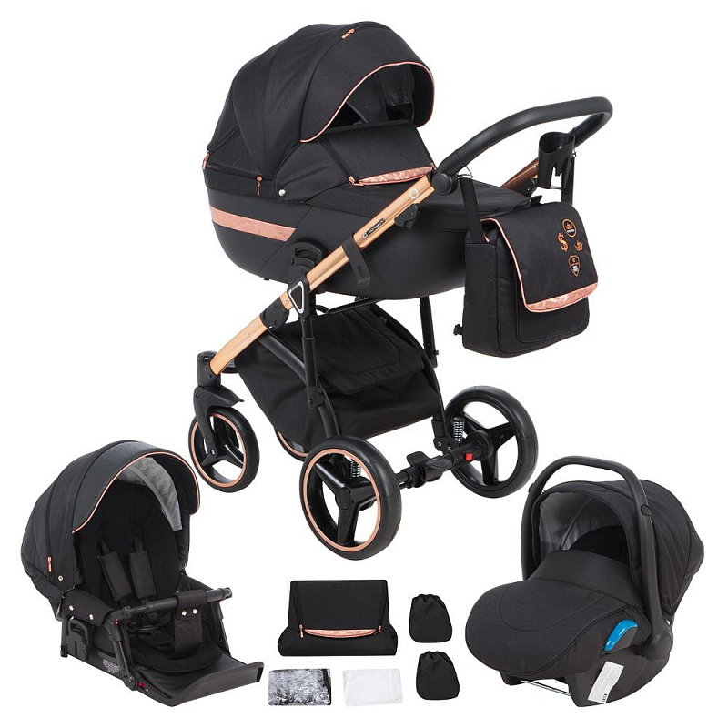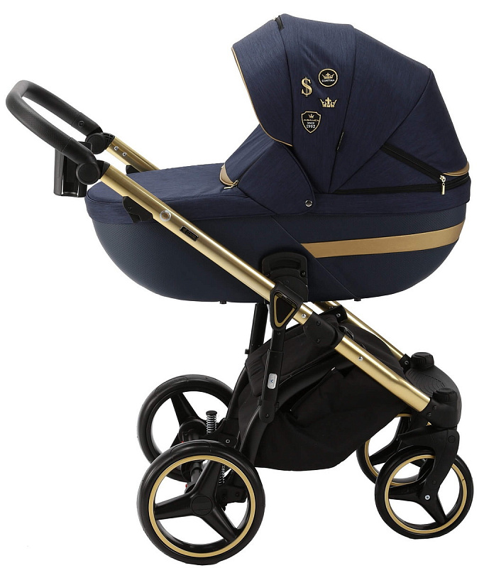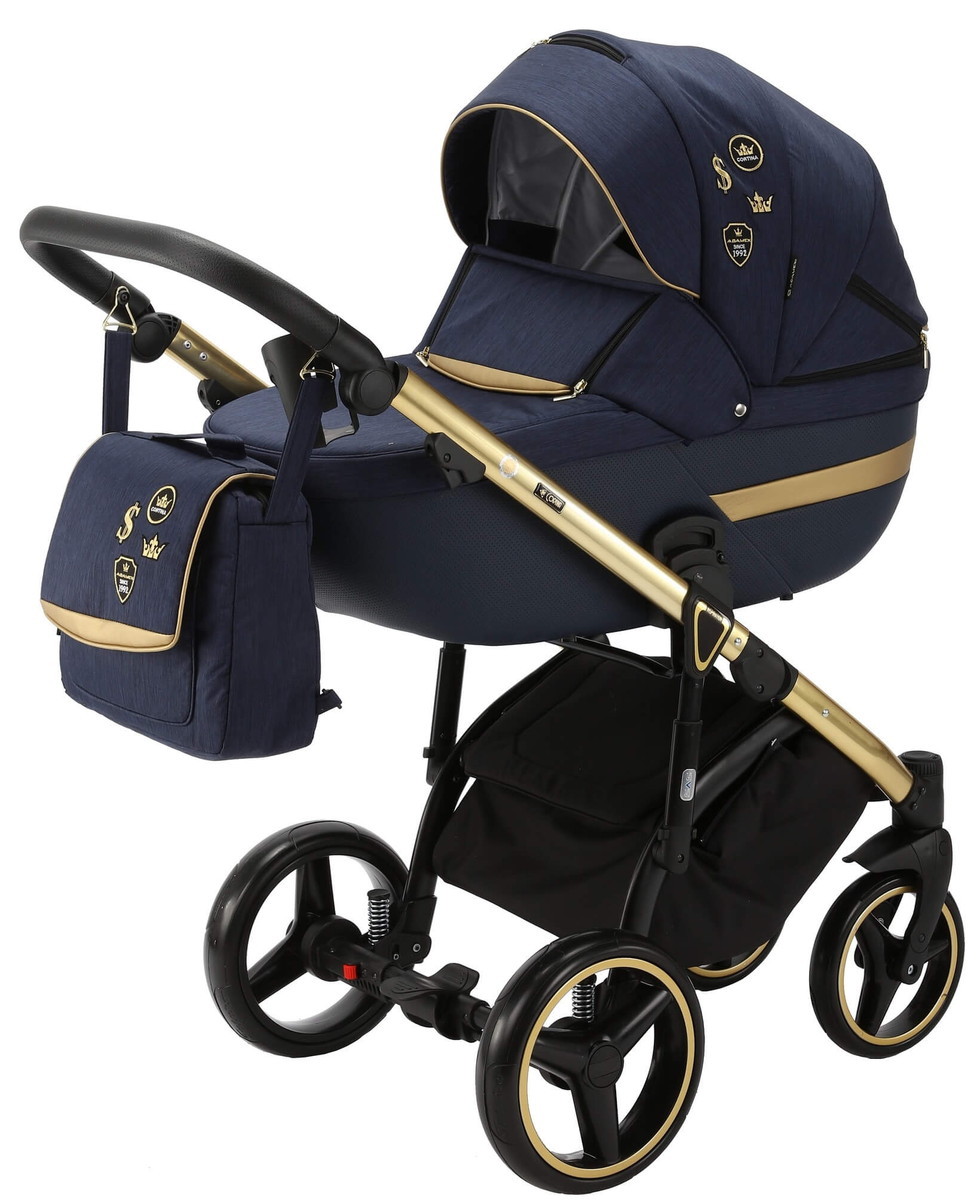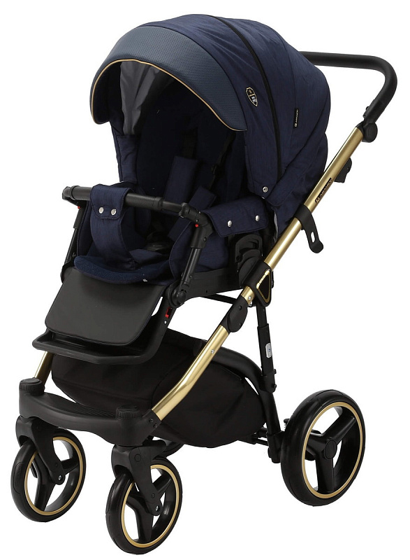Детская коляска Adamex Cortina Special Edition 3 в 1 CT-474 (Т.СИН+Т.СИН.КОЖА+ЗОЛОТ.РАМА)