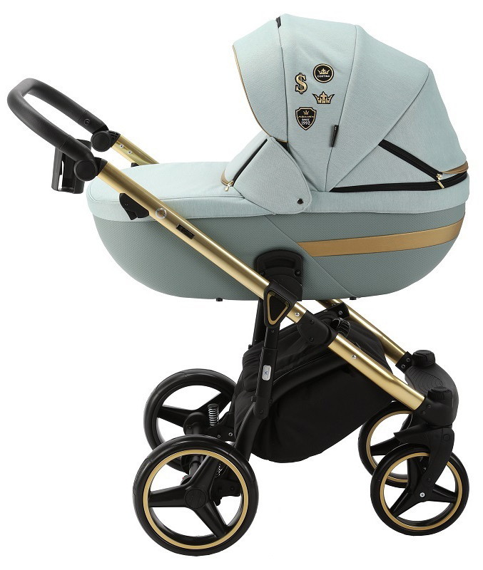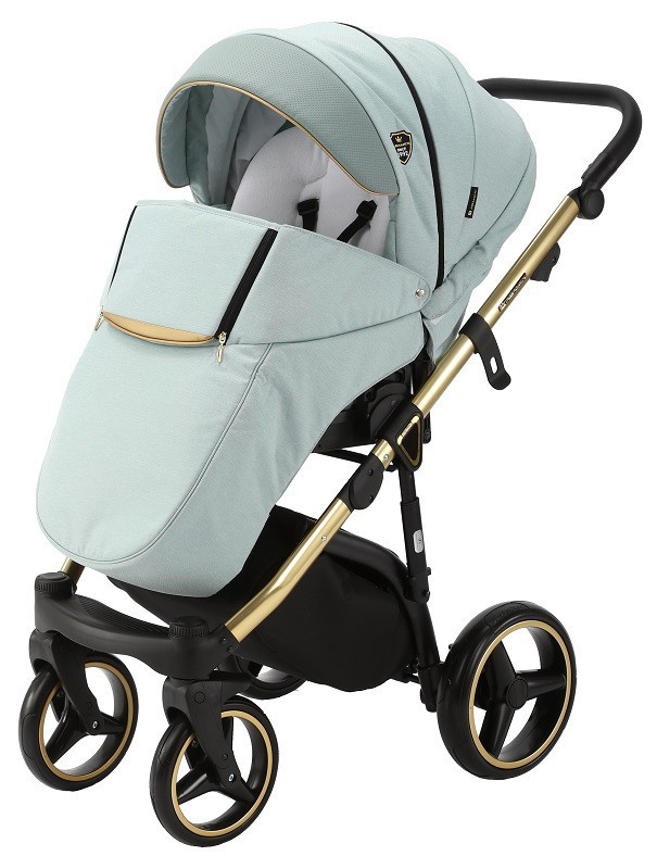 Детская коляска Adamex Cortina Special Edition 3 в 1 CT-475 (СЕР-ЗЕЛЁН+СЕР-ЗЕЛЕН.ПЕРФ.КОЖА+ЗОЛОТ.РАМА)