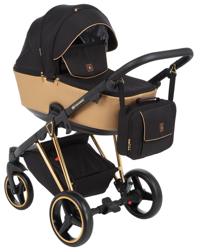 Детская коляска Adamex Cristiano Special Edition 3 в 1 CR-403 (кожа золотая+черный)