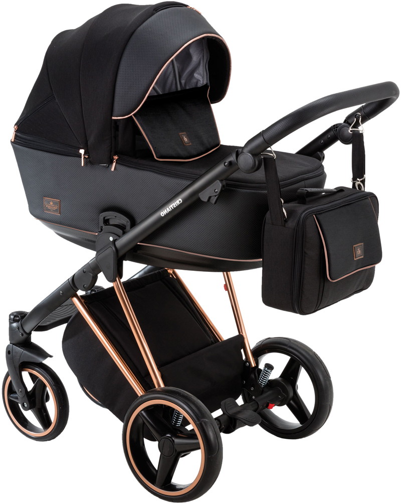Детская коляска Adamex Cristiano Special Edition 3 в 1 CR-408 (ЧЁРН+ЧЕРН.ПЕРФ.КОЖА+МЕДЬ РАМА)