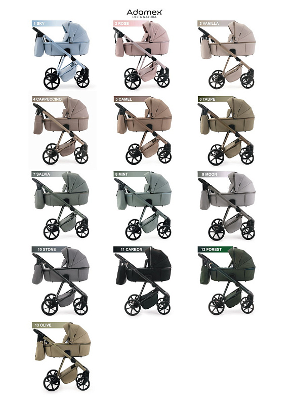 Эта современная многоцелевая коляска в версии NATURA представляет собой сбалансированное сочетание практичности и элегантности. Каркас окрашен фактурной краской с перламутровым эффектом глубины - это выделяет Delta NATURA среди других моделей колясок.