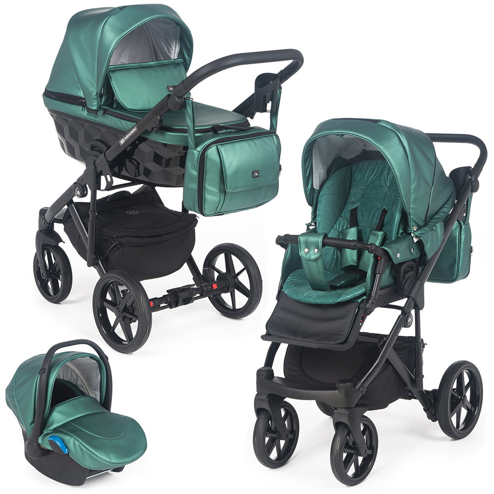 Детская коляска Adamex Diego 3 в 1 SM-1 кожа зеленый металлик