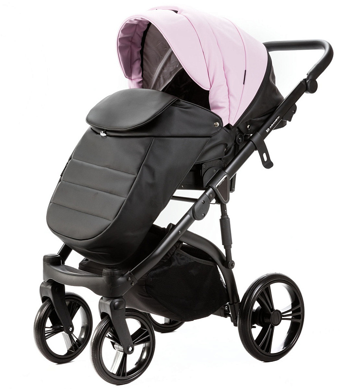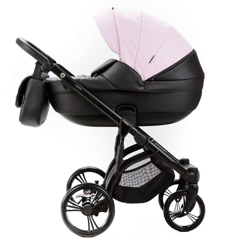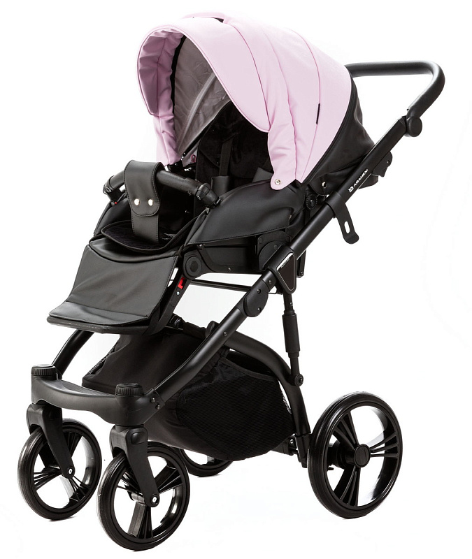 Детская коляска Adamex Lanti Deluxe 2 в 1 LN-SD101 (РОЗОВ.ЗЕФИР КОЖА + ЧЕРН.КОЖА)