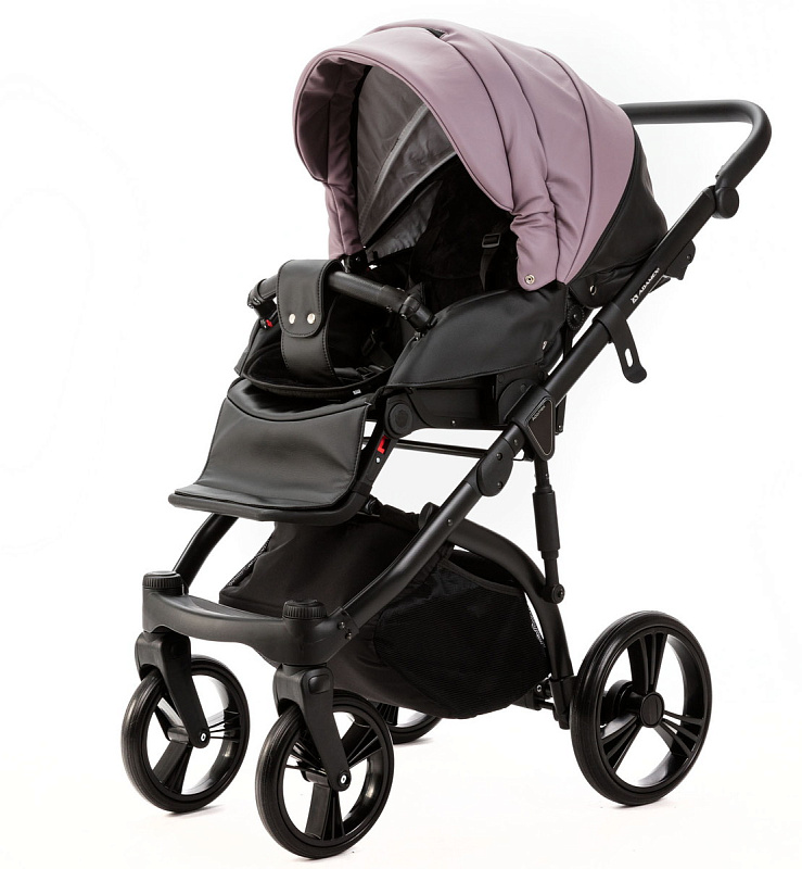 Детская коляска Adamex Lanti Deluxe 2 в 1 LN-SD106 (СИРЕНЕВ.КОЖА + ЧЕРН. КОЖА)