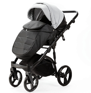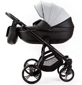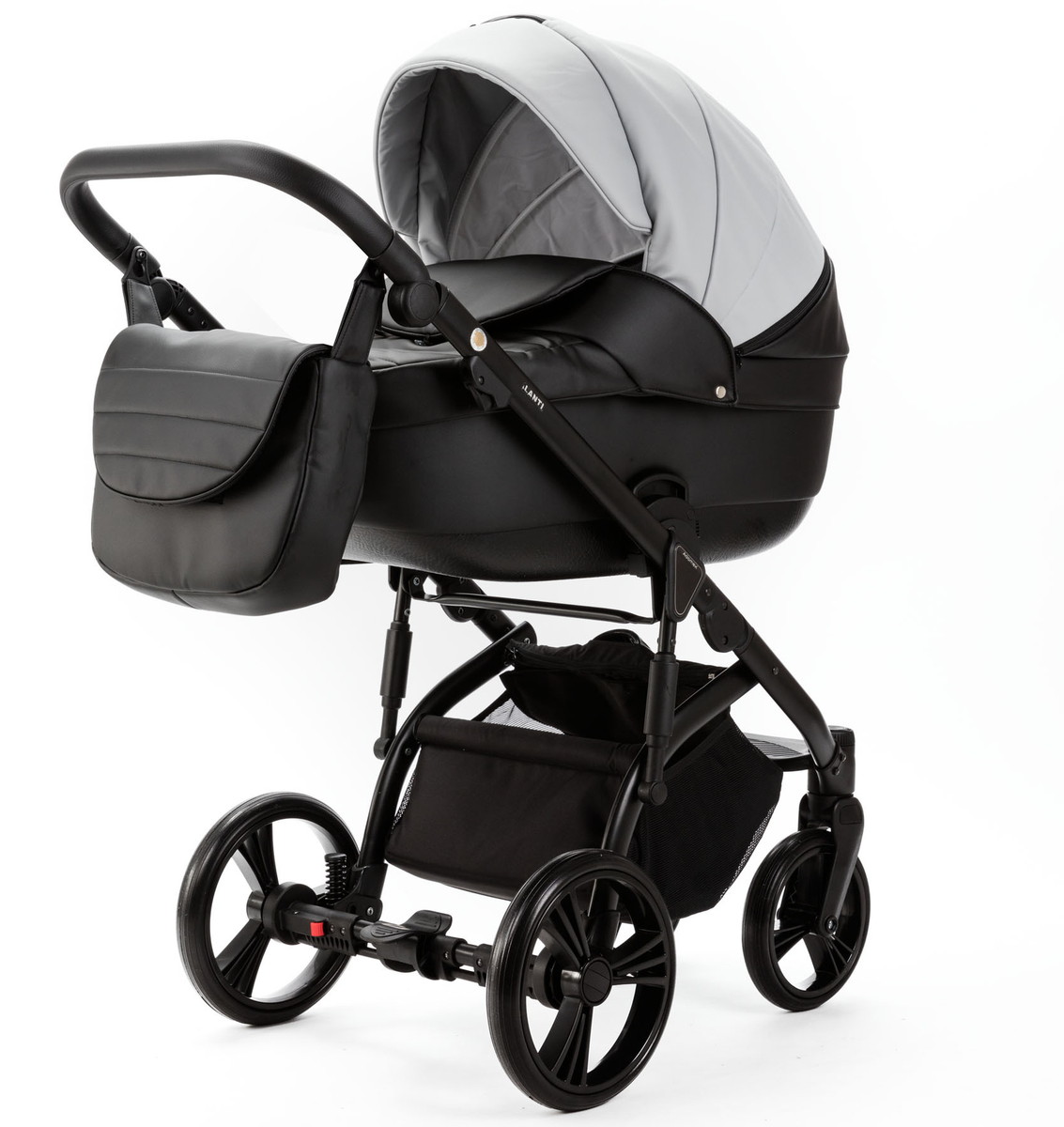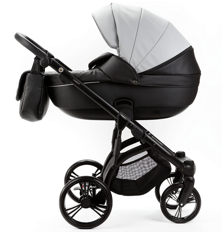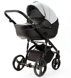 Детская коляска Adamex Lanti Deluxe 2 в 1 LN-SD107 (СВ.СЕР.КОЖА + ЧЕРН. КОЖА)