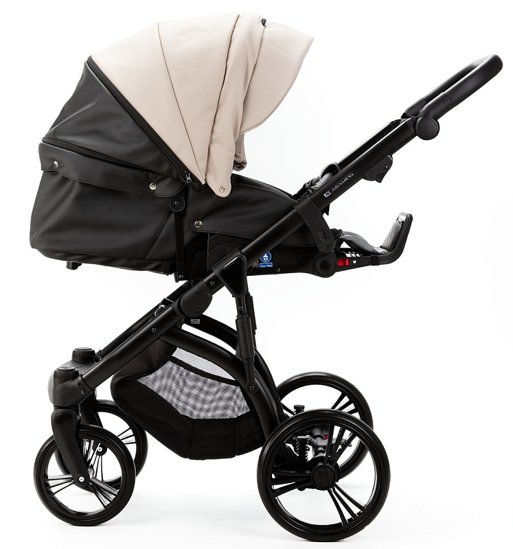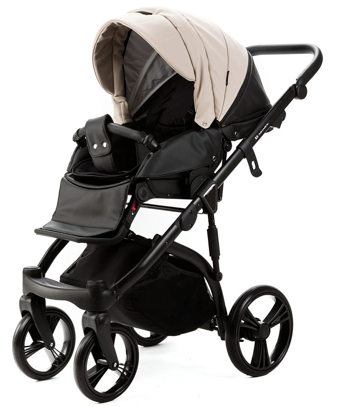 Детская коляска Adamex Lanti Deluxe 2 в 1 LN-SD110 (СВ.БЕЖ.КОЖА + ЧЕРН. КОЖА)