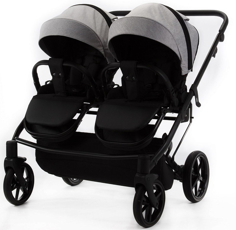 Детская коляска для двойни Adamex Leo Duo 3 в 1 TK01 (СВЕТЛО-СЕРЫЙ)