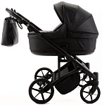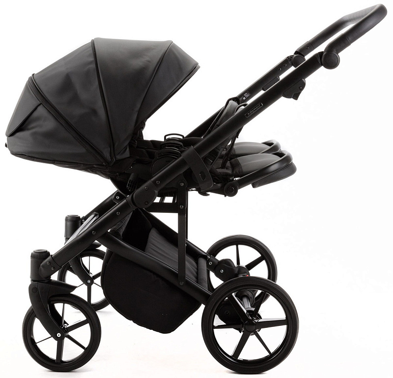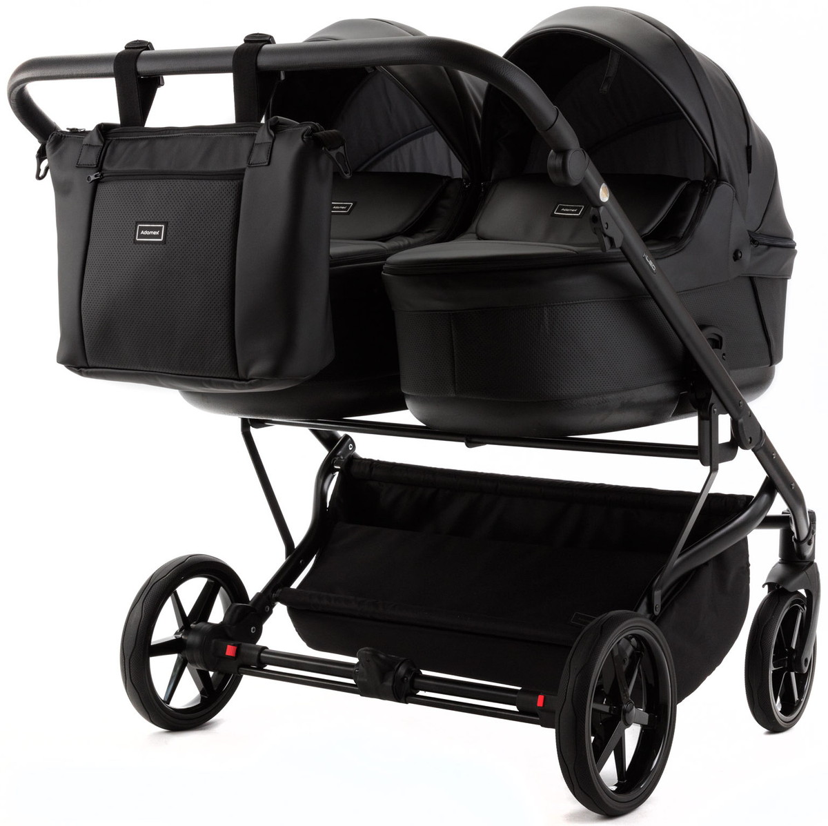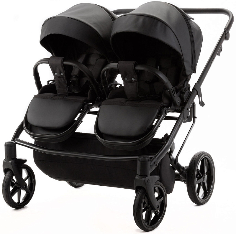 Детская коляска для двойни Adamex Leo Duo Deluxe 3 в 1 DUO-SA2 (ЧЕРНАЯ КОЖА)