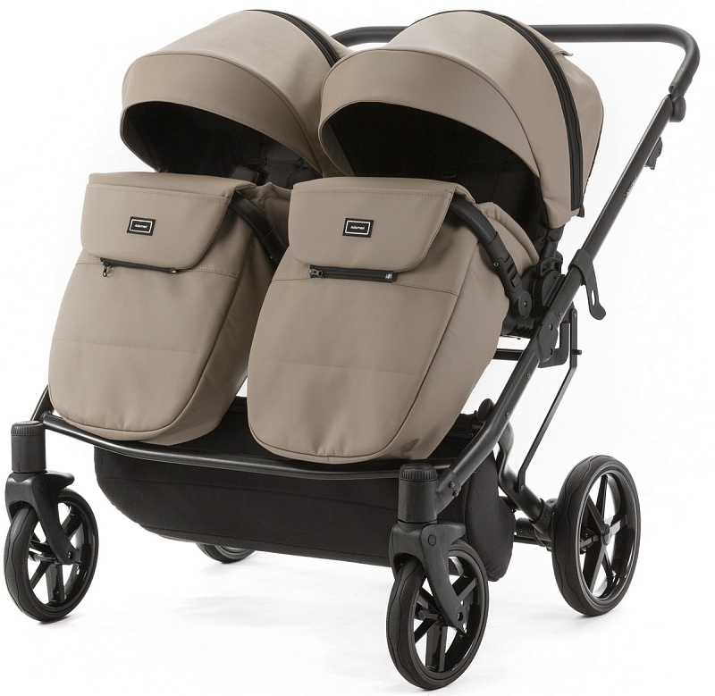 Детская коляска для двойни Adamex Leo Duo Deluxe 3 в 1 DUO-SA9 (Т.БЕЖЕВАЯ КОЖА)