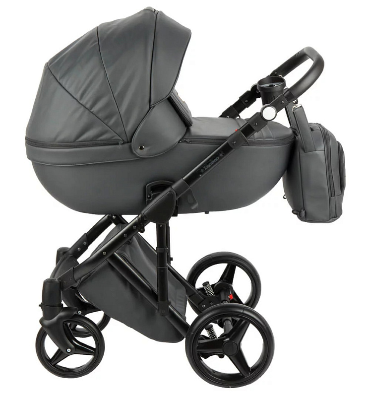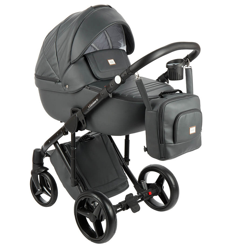 Эффектная детская коляска Adamex Luciano Deluxe 2 в 1 полностью выполнена в эко-коже и оснащена двумя съемными взаимозаменяемыми блоками, которые попеременно устанавливаются на единое шасси по мере взросления малыша.