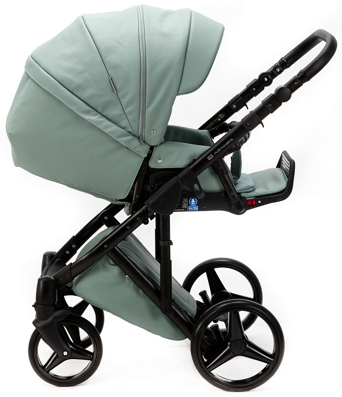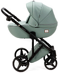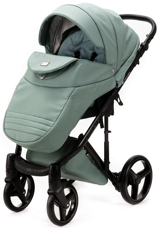 Детская коляска Adamex Luciano Deluxe 2 в 1 Q114-С (СЕРО-ЗЕЛЕН.КОЖА 100%+ЧЕРАЯ РАМА)