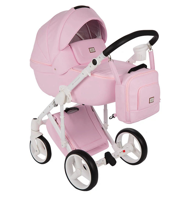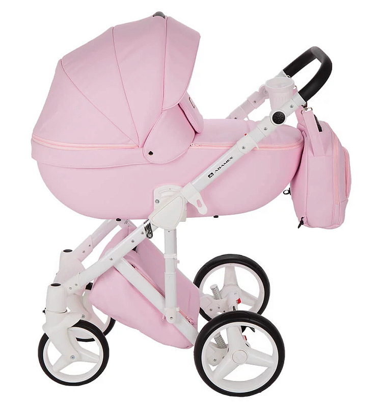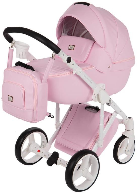 Детская коляска Adamex Luciano Deluxe 3 в 1 Q110 (РОЗОВ.ЗЕФИР+100% КОЖА)