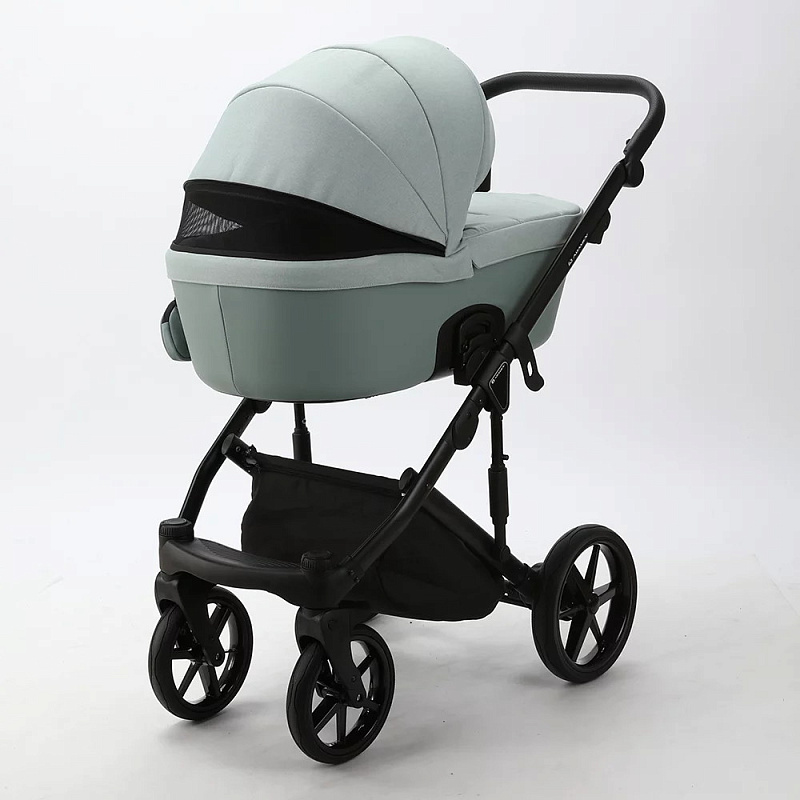 Инновационная модель детской коляски, люлька изготовлена из вспененного полипропилена, т.е. материала, на 95% состоящего из воздуха. В результате он очень легкий и чрезвычайно прочный. Люлька имеет чрезвычайно малый вес, сохраняет изотермические свойства, устойчива к грибкам и плесени, снижает уровень шума и на 100% подлежит вторичной переработке. Матрас люльки изготовлен из кокосового волокна. В донышке люльки предусмотрена вентиляционное отверстие. Капюшон люльки имеет козырек от солнца и сегмент для проветривания. Накидка с откидным клапаном, под которым расположено смотровое окошко. Внутренняя обивка люльки выполнена из хлопковой ткани.